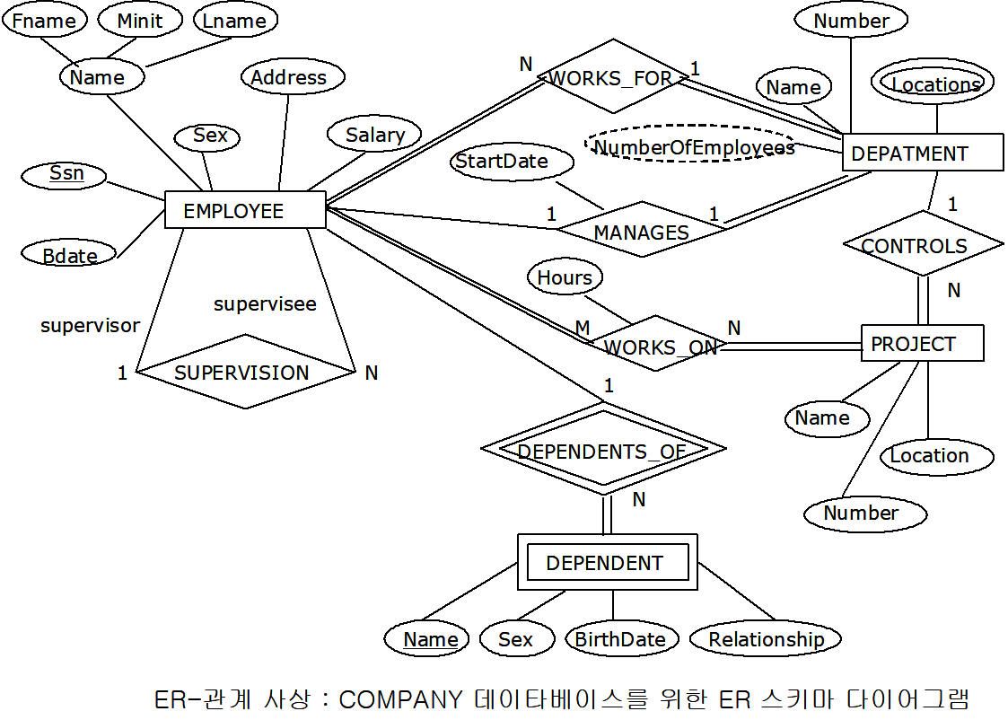 - 예를 들어, EMPLOYEE (감독자 또는 상사의 역할로)와 EMPLOYEE (부하 또는 근로자의 역할로) 간의 SUPERVISION 관계