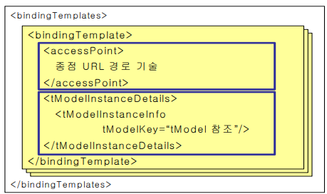 bindingTemplate은 크게 <accessPoint>와 <tModelInstanceDetails>라는 두 요소로 나뉜다.
