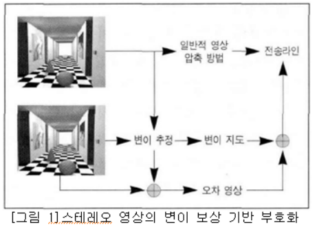 스테레오 영상 압축 방법 중 가장 많이 사용되고 있는 방법이 변이 추정을 이용한 방법이다. 이 방법은 스테레오 영상 쌍 중 기준이 되는 영상을 독립적으로 부호화하고, 다른 영상은 기준이 되는 영상에서의 변이를 추출 후 이를 보상하는 방식이다. 추정 후 추정된 영상과 실제 영상의 차이를 구하게 되고, 여기서 구해진 차이 영상이 오차영상(residual image)이 된다.
