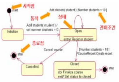 + 상태도(statechart)는 UML 의 주요 다이어그램 중 하나이다.