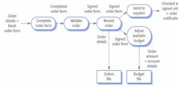 + DFD(Data flow diagrams)가 시스템의 데이터 처리를 모델링하는데 주로 사용된다. +