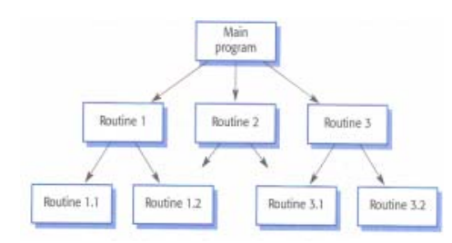 ① 서브루틴(subroutine) 계층의 최상위(top)에서 제어가 시작되어 아래쪽으로 전파되어 가는 모델