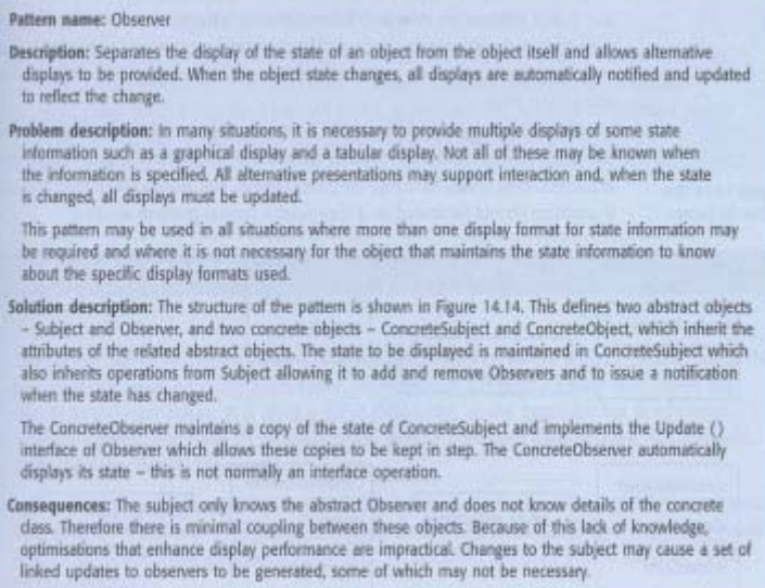 - 디자인 해결에 대한 관계나 역할들을 기술한다. 구체적인 설계에 대한 것이 아니며 다양한 방법으로 구현될 수 있는 설계 방법에 대한 탬플릿(template)이다.