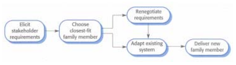 ※ 시스템 요구사항에 대한 개요를 잡고, 이와 관련하여 재사용 가능한 컴포넌트를 찾는다. 발견한 컴포넌트에 적합하도록 요구사항을 수정한다. 수정된 요구사항으로 아키텍쳐를 설계하고, 실제 구현에 사용할 수 있고 적용가능한 컴포넌트를 찾아서 재사용 컴포넌트를 기반으로 시스템을 설계한다.