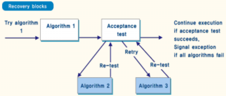 N-version programming과 Recovery blocks 방법은 설계와 구현의 다양성(diversity),