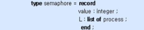 ◎ 각 세마포어는 정수값과 프로세스의 리스트를 갖고 있다.