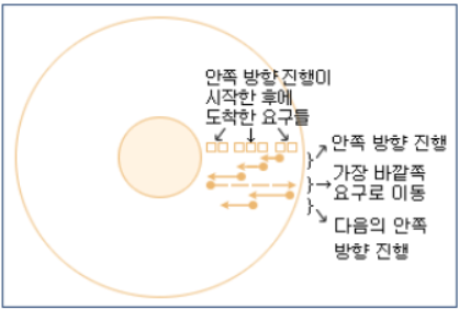 ․암은 안쪽의 요구를 끝마쳤을 때에는 요구에 서비스하지 않고 최외각 실린더에서 가장 가까운 요구로 점프하여 다시 안쪽으로 움직이면서 요구를 처리하는 과정을 재개한다.