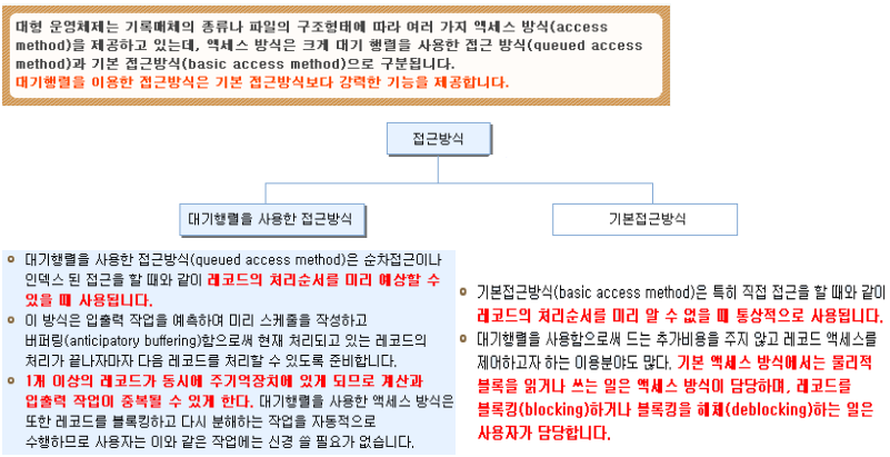 첫째 : 파일에 저장되어 있는 데이터에 접근하는 방식에 관련되는 액세스 방식(access method)