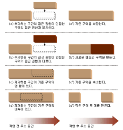․아래의 그림은 선형 주소 구간의 추가와 제거에 대해 도식화한 것이다.